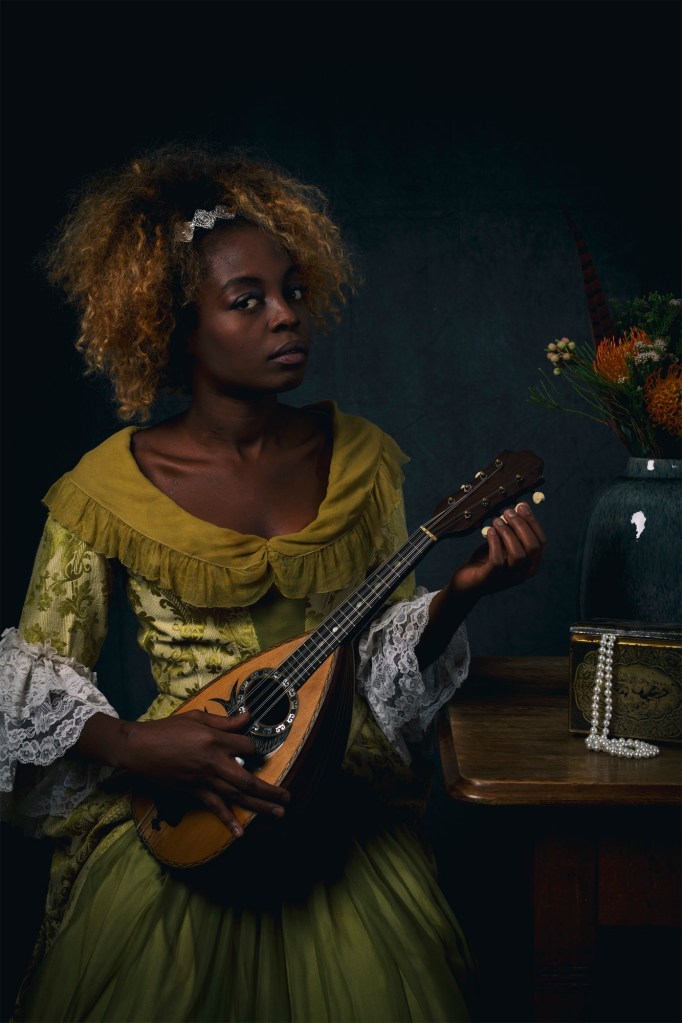 However, the portraits of the work „She’s a Queen, her soul is royalty“ in the ‘Her Story’ exhibition at Galerie Sechs came about by chance. A stylist and designer friend of mine, Stephanie Klaproth, was doing an internship in the costume department at Basel Theatre at the time and we came up with the idea for the portraits using baroque costumes that we were allowed to borrow there. And that’s how the work came about.
